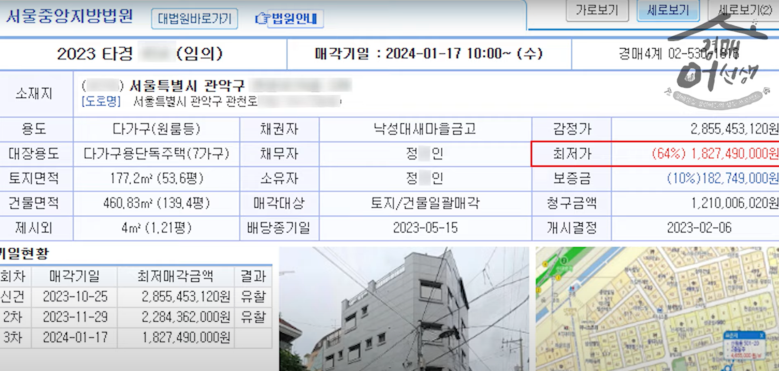 이미 아까 1월 17일에 25억에 낙찰되었다고 했으니까...