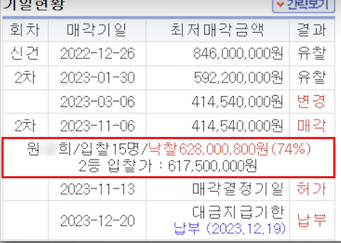 드디어 2023년 11월 6일에 15명이 입찰하여 낙찰 되었네요.