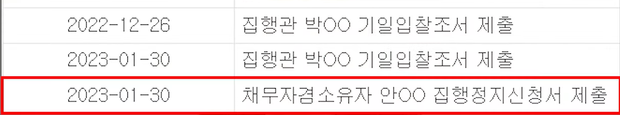 멈췄던 경매사건은 풀려나서 다시 재진행 됩니다.